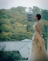 在其中一张备受瞩目的照片中,李一桐以一袭白色抹胸鱼尾裙亮相,礼服上的璀璨装饰如星河洒落,与窗外的柔光相映生辉。她或背对镜头轻抚发丝,侧编麻花辫自然垂落,展现出完美的腰臀曲线;或转身回眸浅笑,眼眸低垂间,黑长直的发辫更添东方韵味,整个画面充满故事感,仿佛电影镜头下沉思的女主角,温婉中蕴含着独立的力量。这种将服装与情绪、场景完美融合的能力,正是她“演员式时尚感”的体现——让静态的礼服拥有了动态的戏剧张力。